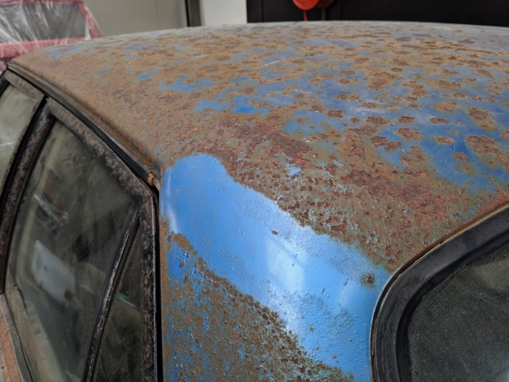 The methods available to use are….. Grinding, Sanding, Media blasting, Dry sandblasting, Wet sandblasting and Acid dip stripping. In some cases, several of these options could be used on the same vehicle to remove scale rust. If the scale rust has developed further steel sections may need to be repaired or replaced.